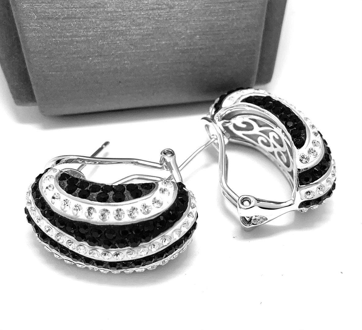 18k White Gold & Jewelry Bronze 3.00ctw Black & White Crystal Hoop Earrings