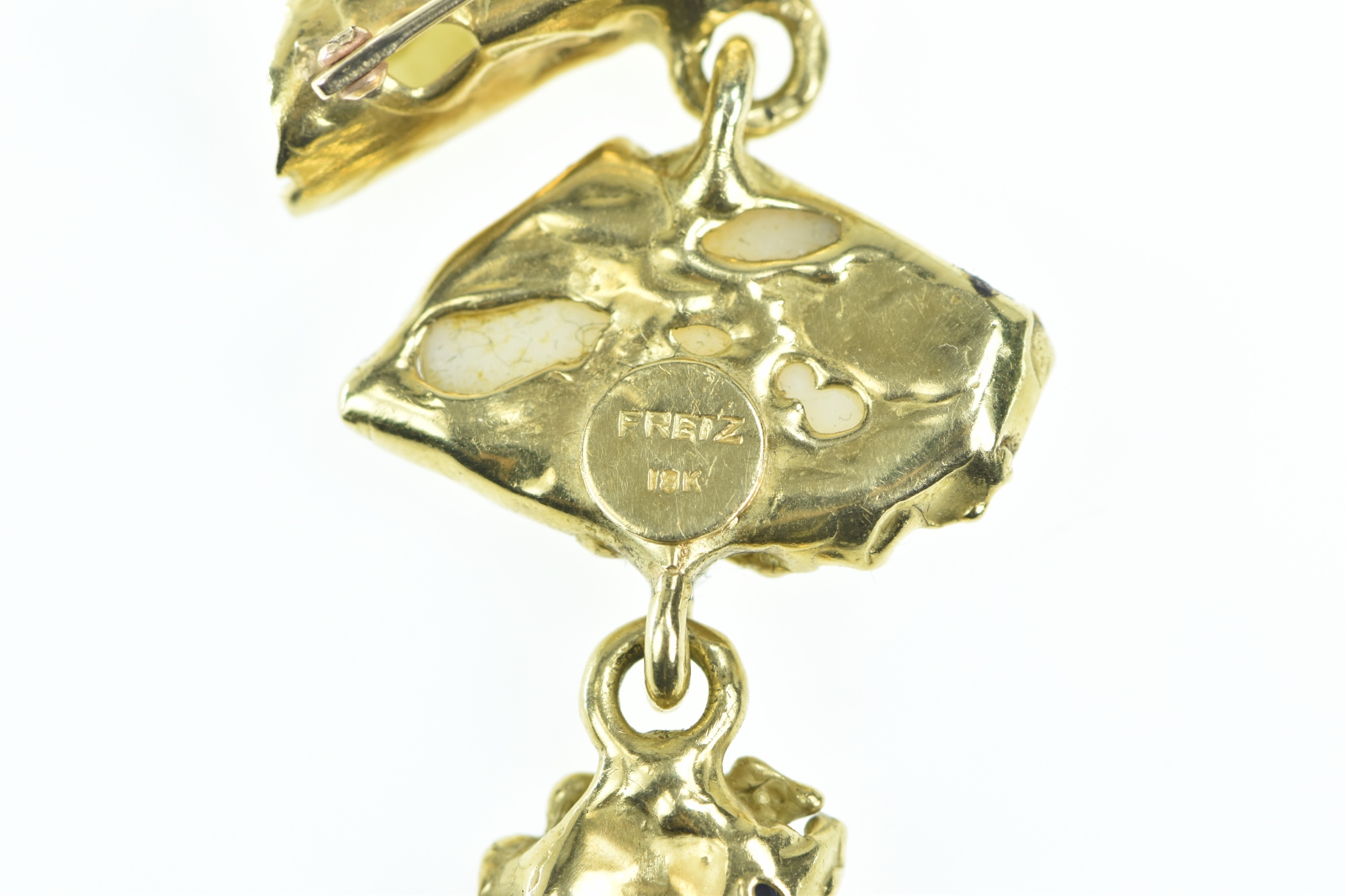 18K William Fretz Opal Moonstone Goldstone Yellow Gold Pin/Brooch