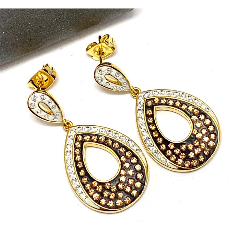 18k Yellow Gold & Jewelry Bronze 3.00ctw Cognac & White Natural Crystal Earrings