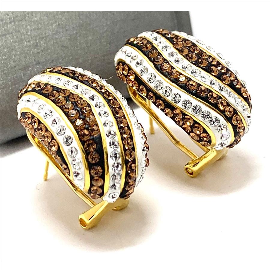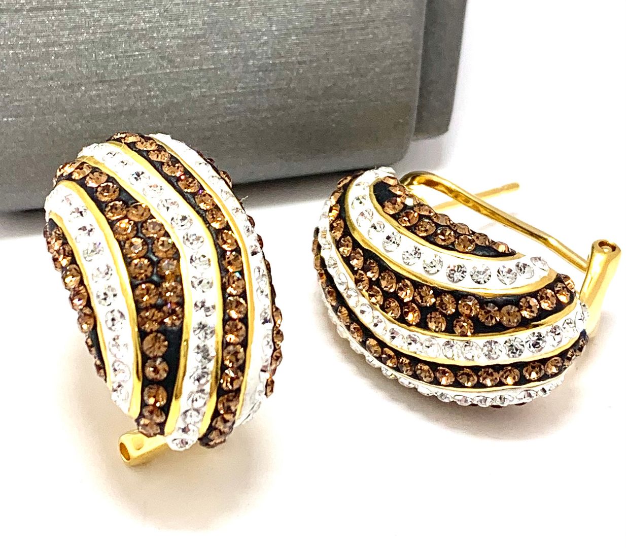 18k Yellow Gold & Jewelry Bronze 3.00ctw Cognac & White Natural Crystal Hoop Earrings