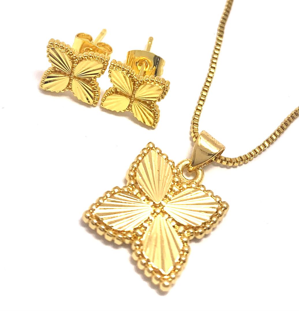 18k Yellow Gold Overlay Set Fancy Necklace & Earrings