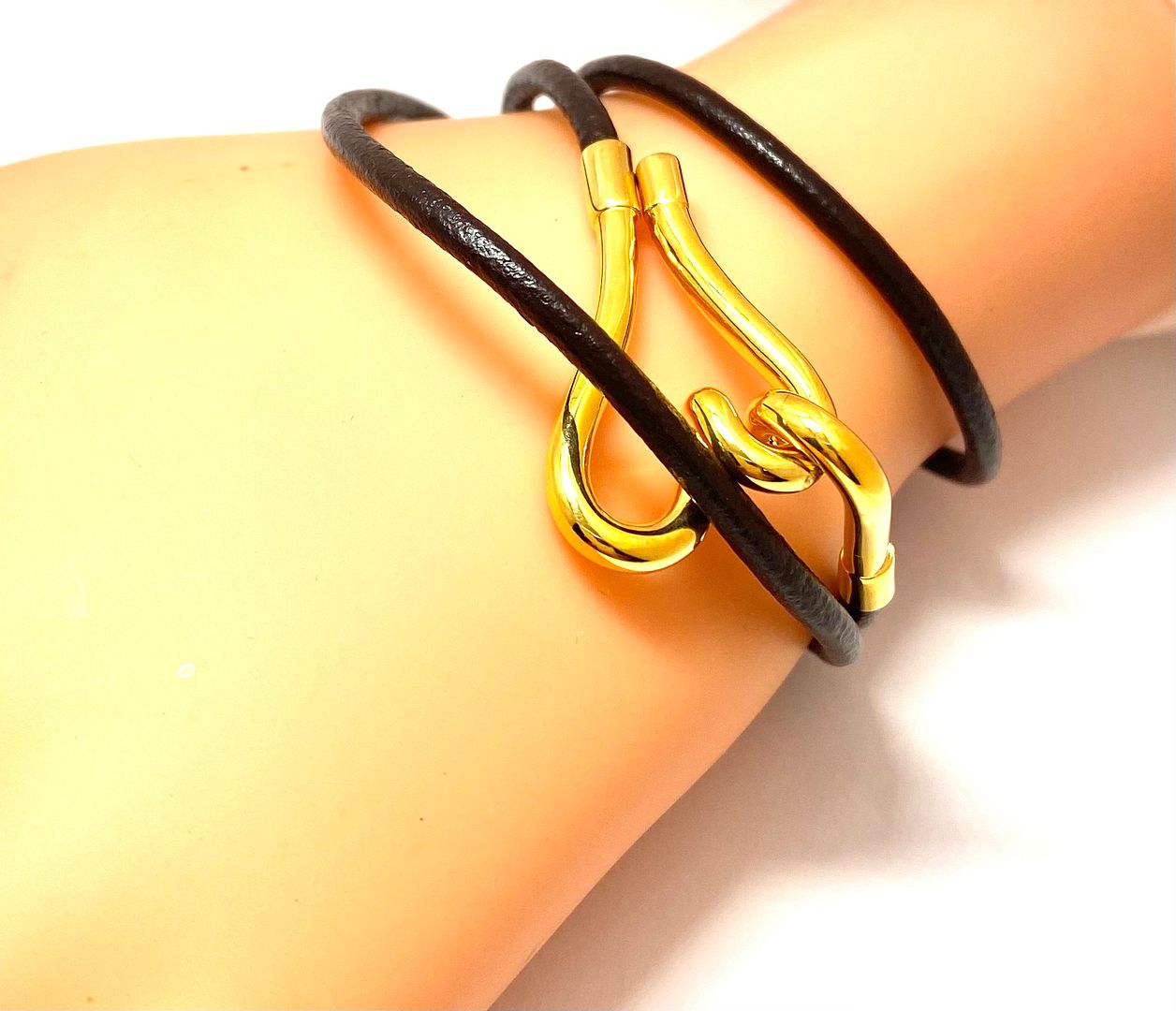 18K Yellow Gold Plated Wrap Around Heart Leather Bracelet