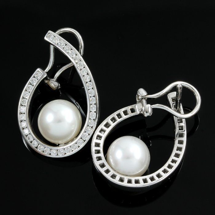18kt White Gold, 1.28ctw Natural Diamond & 10 mm Japanese Akoya Pearl Women's Earrings