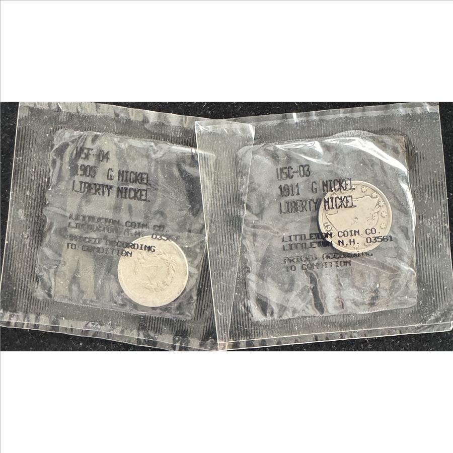 1905 AND 1911 LIBERTY NICKELS IN LITTLETON SEALED PKGS