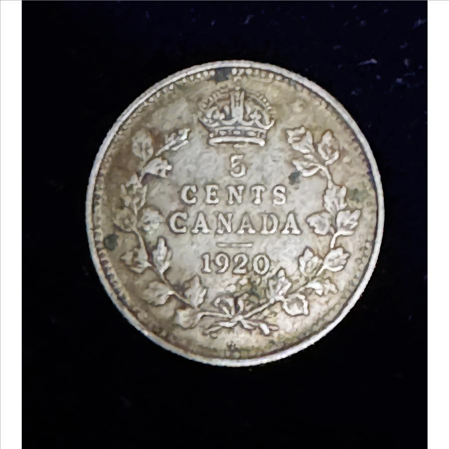 1920 SILVER CANADA 5 CENT DETAILED COIN (DIRTY)