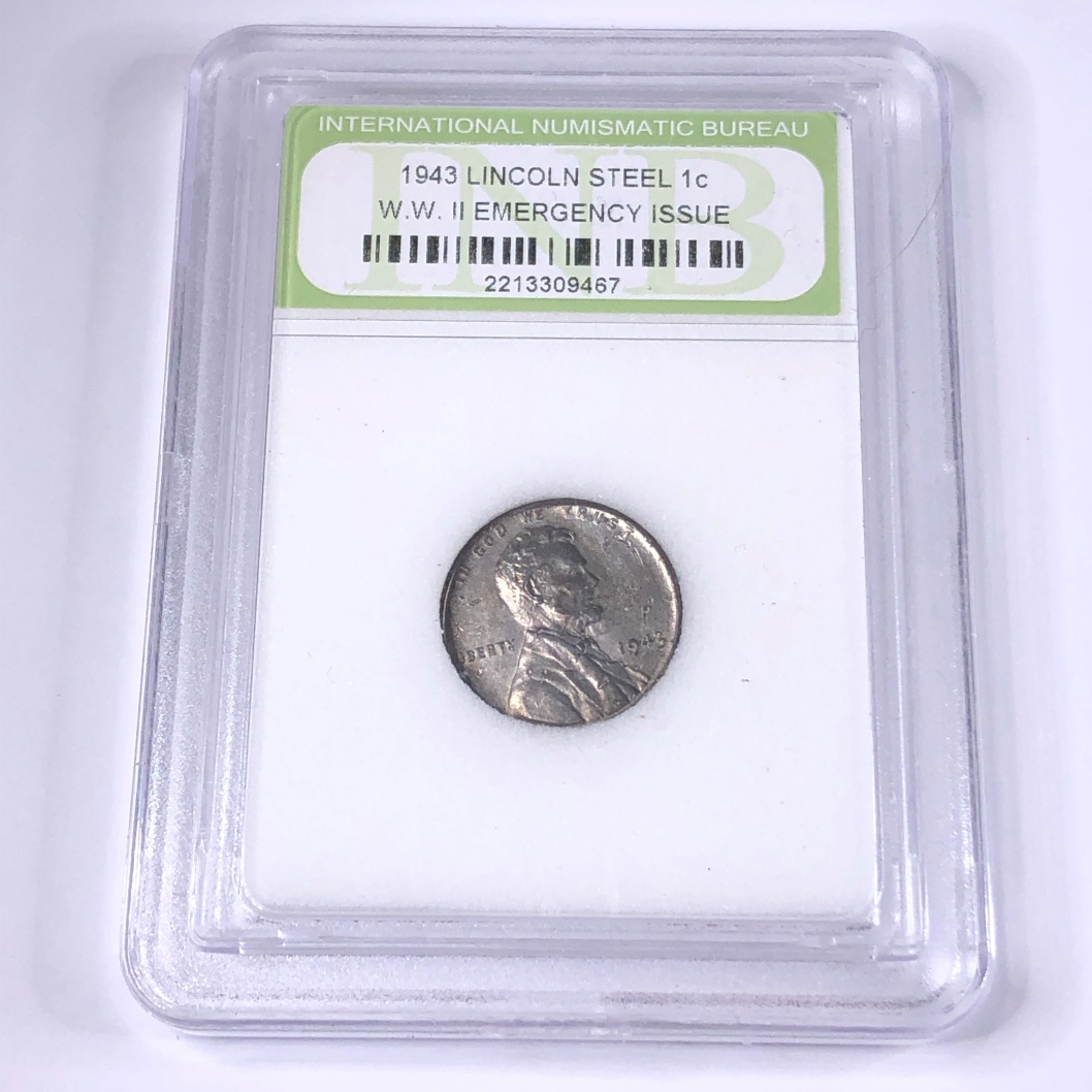 1943 Lincoln Head Steel Wheat Cent*WWII Emergency Issue*In Custom Holder
