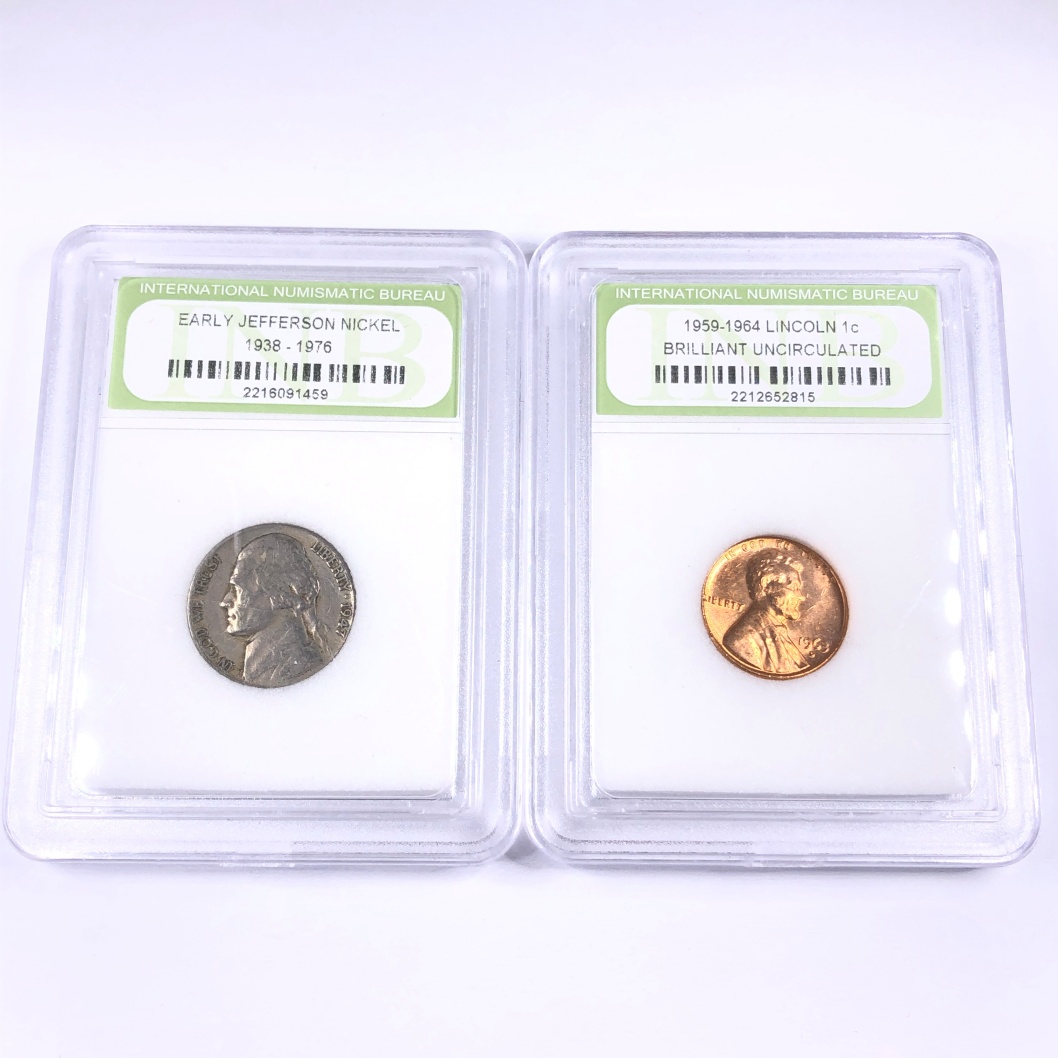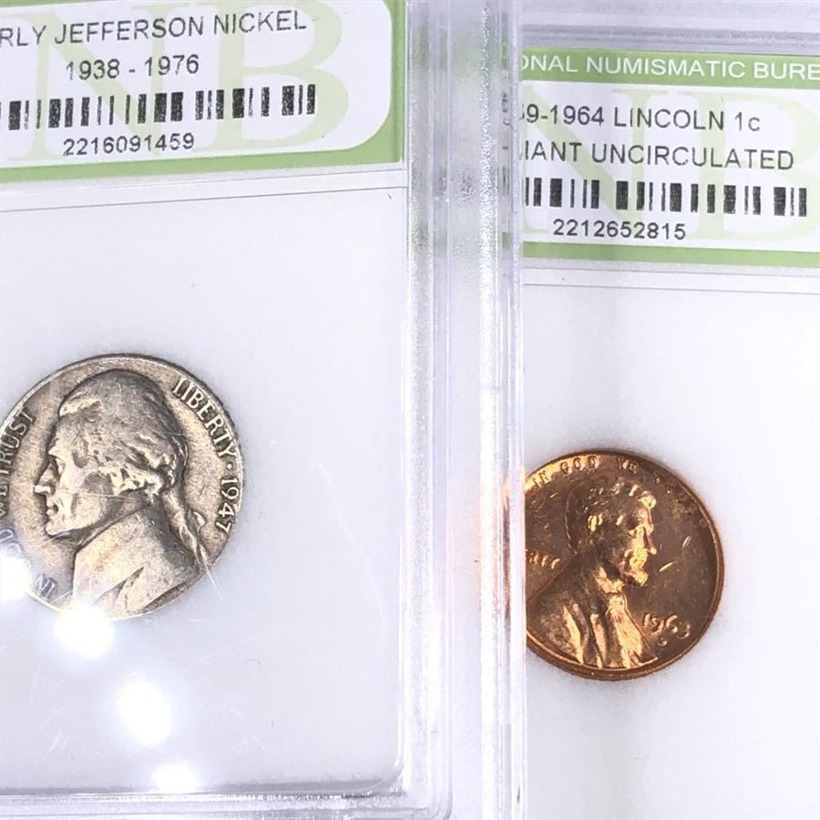 1947 Jefferson Nickel and Brilliant Uncirculated 1963-D Lincoln Head Memorial Cent*In Custom Holders