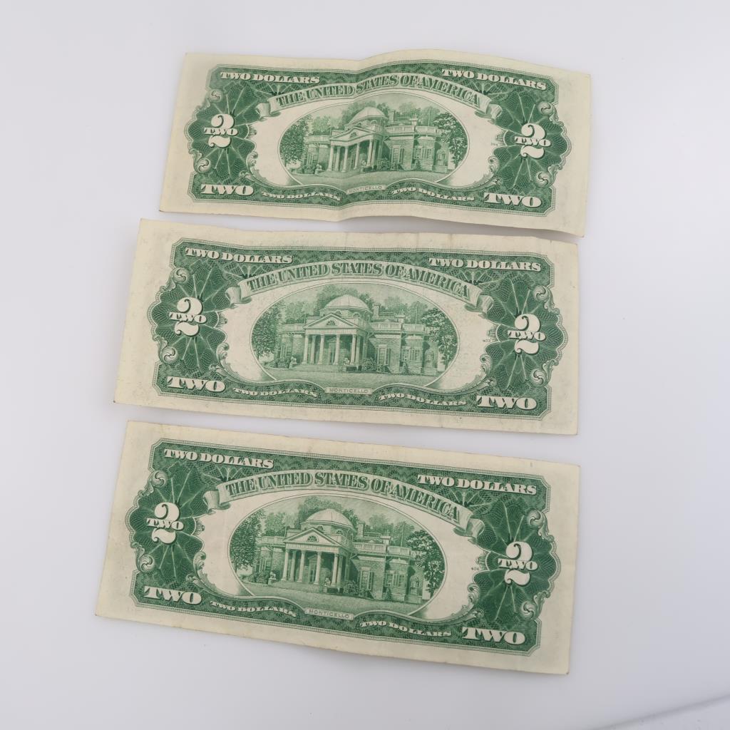 1953-A & 1953-B United States Note 2 Dollar Bill Red Seal, 3 Pieces