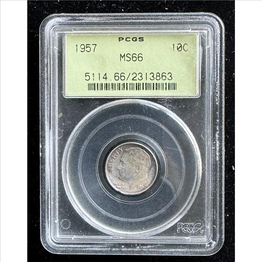 1957 SILVER DIME, PCGS GRADED MS-66 IN THE SLAB