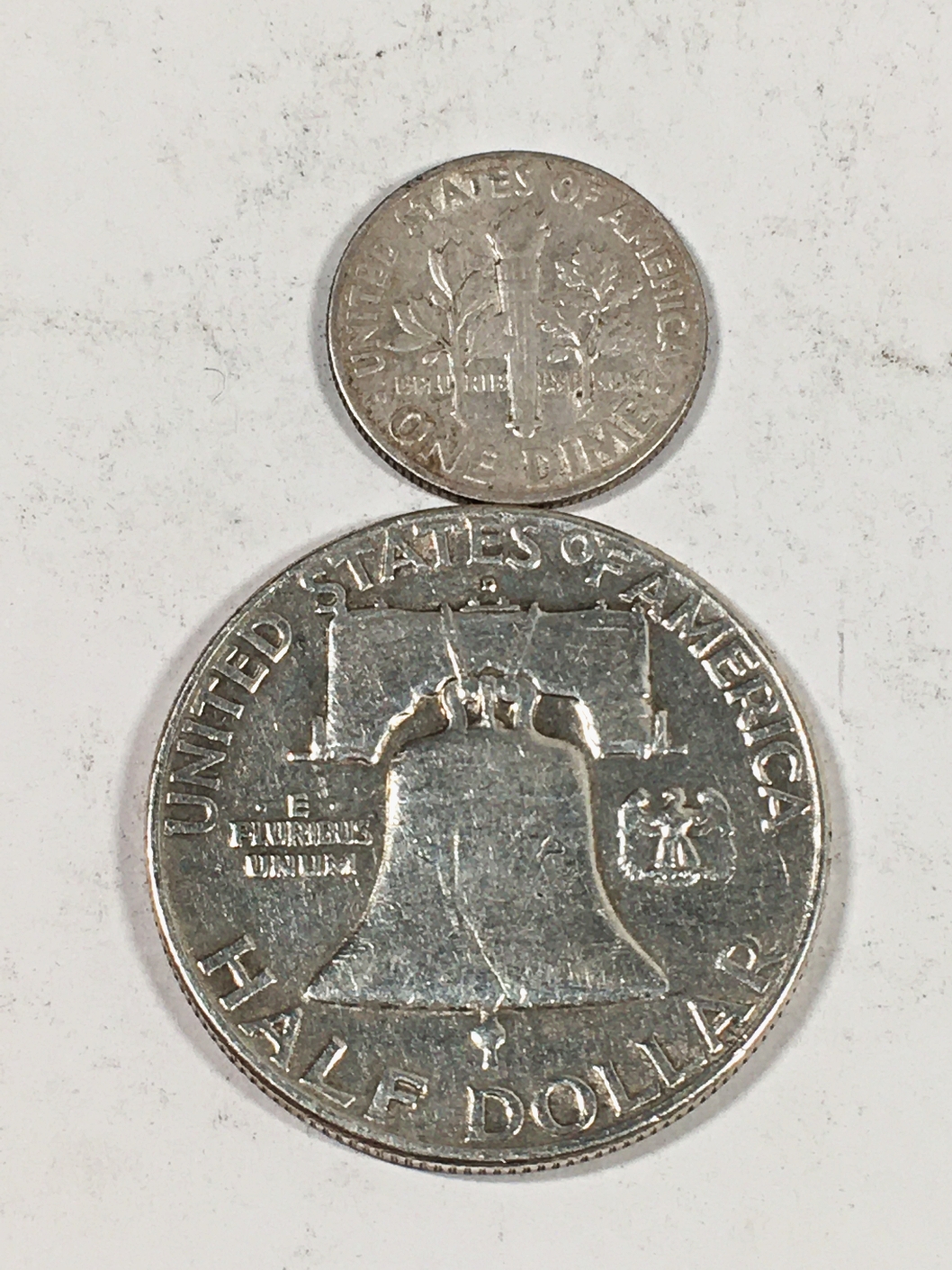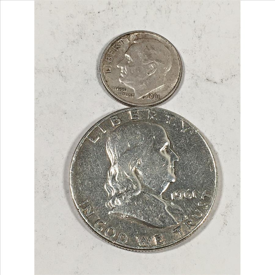 1961-D Silver Franklin Half Dollar & 1961 Silver Roosevelt Dime