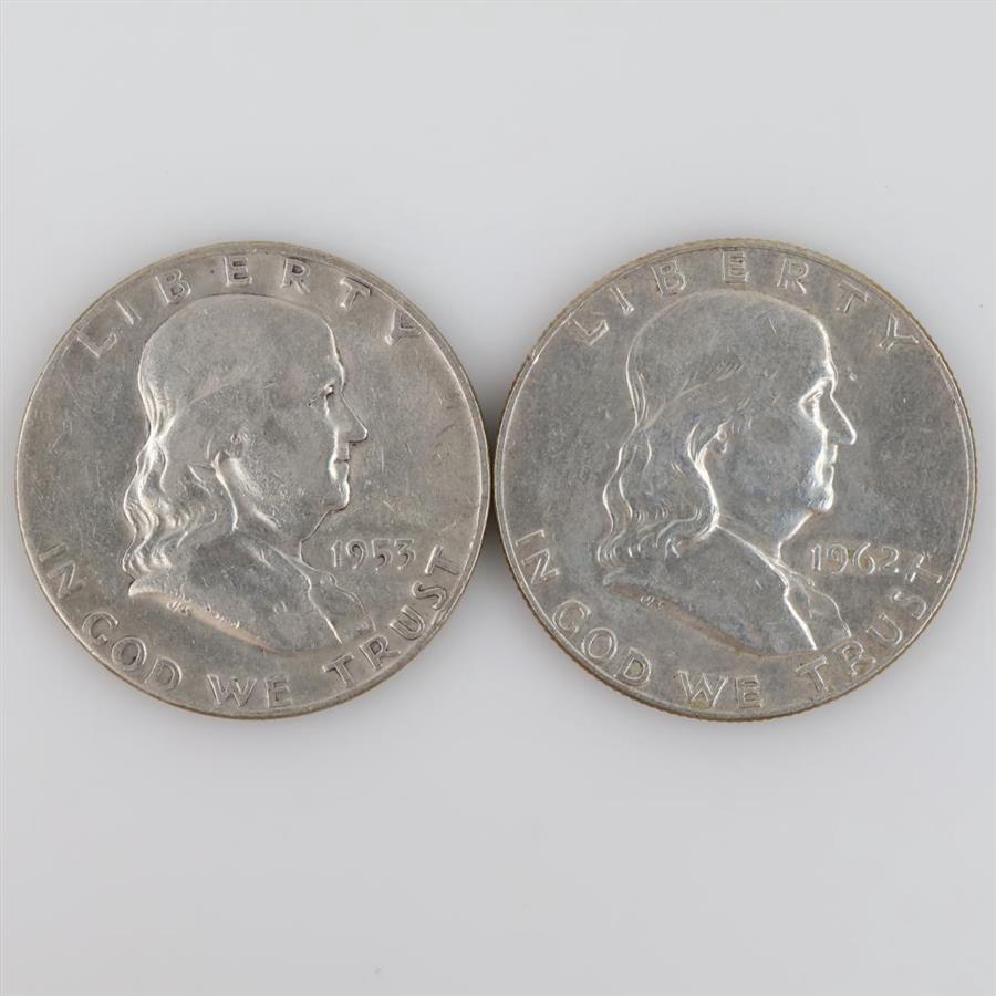 1962-D & 1953-D US Franklin Silver Half Dollars