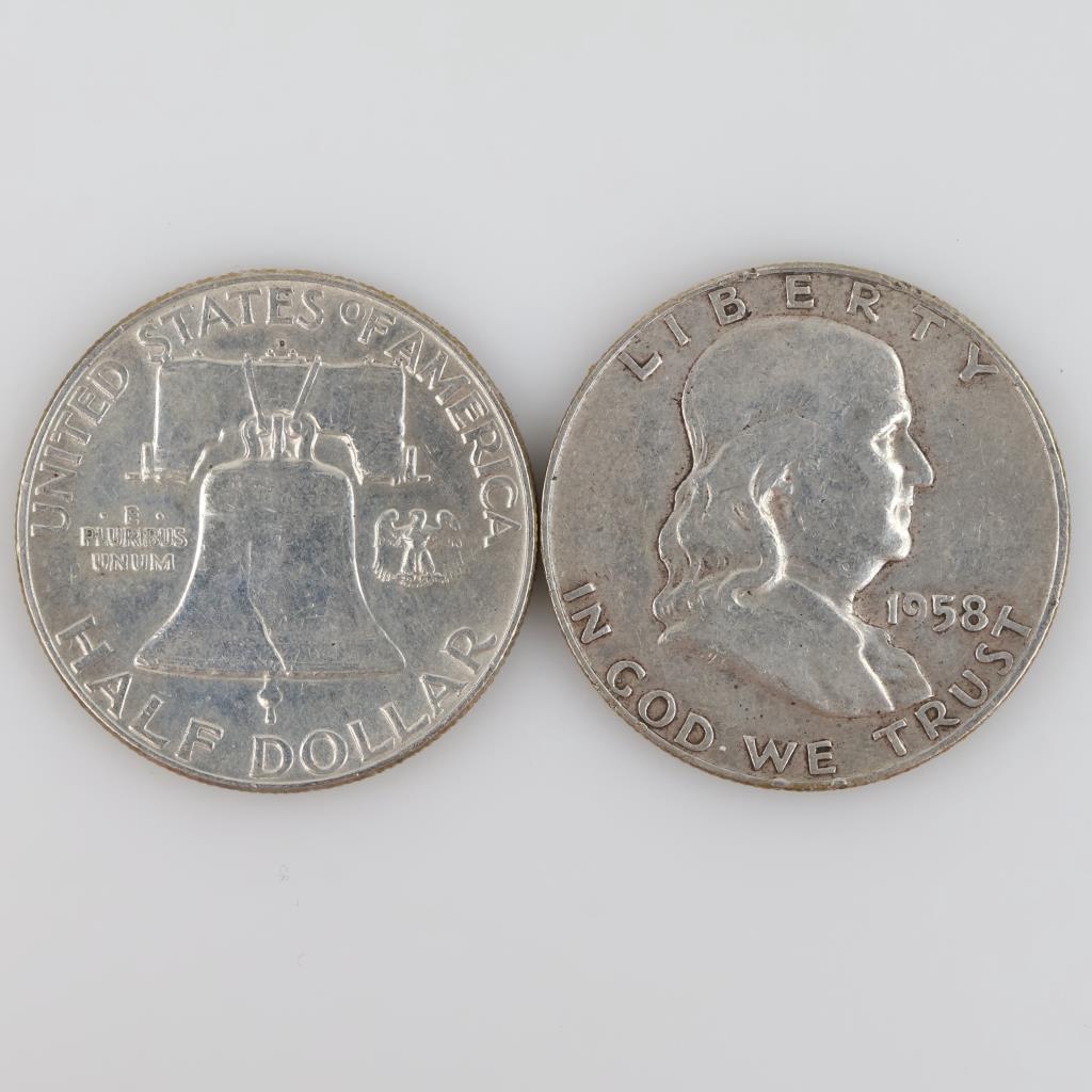 1963-D & 1958-D US Franklin Silver Half Dollars