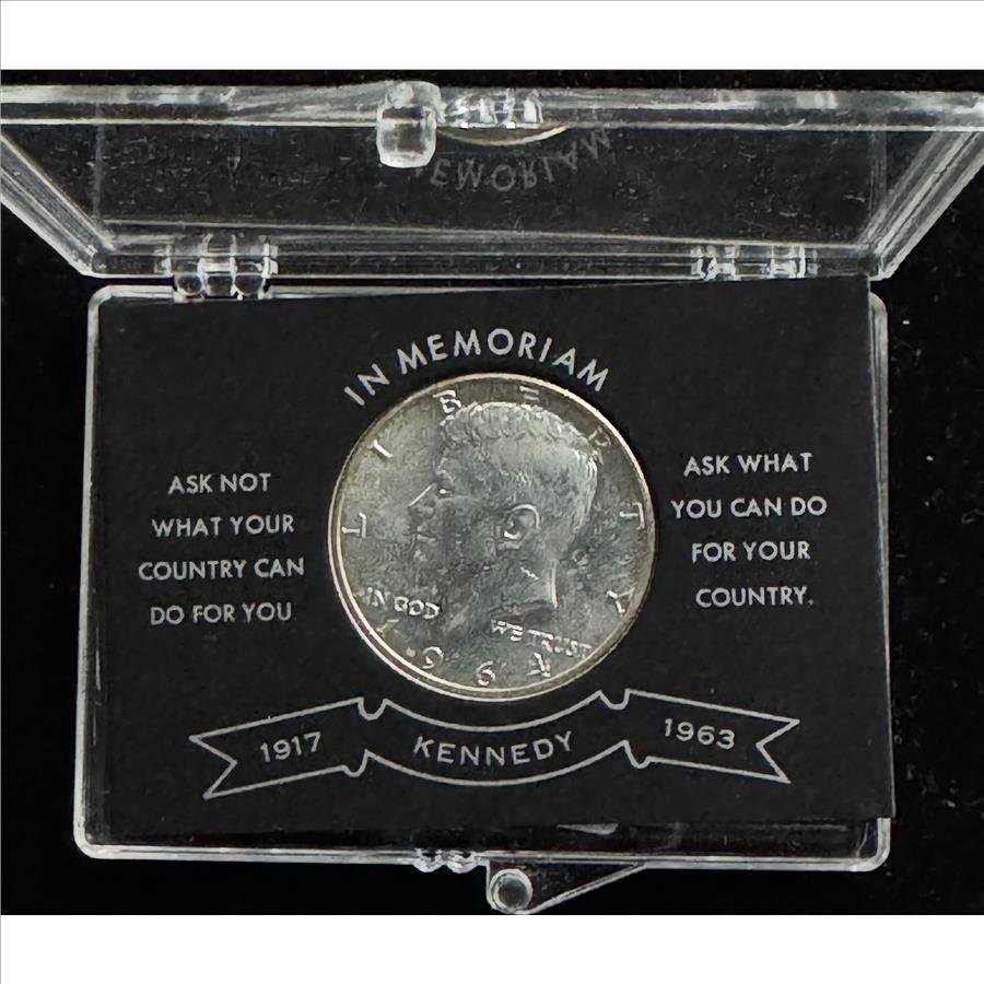 1964-D KENNEDY SILVER HALF DOLLAR COIN, NICE IN A KENNEDY MEMORIAL CASE