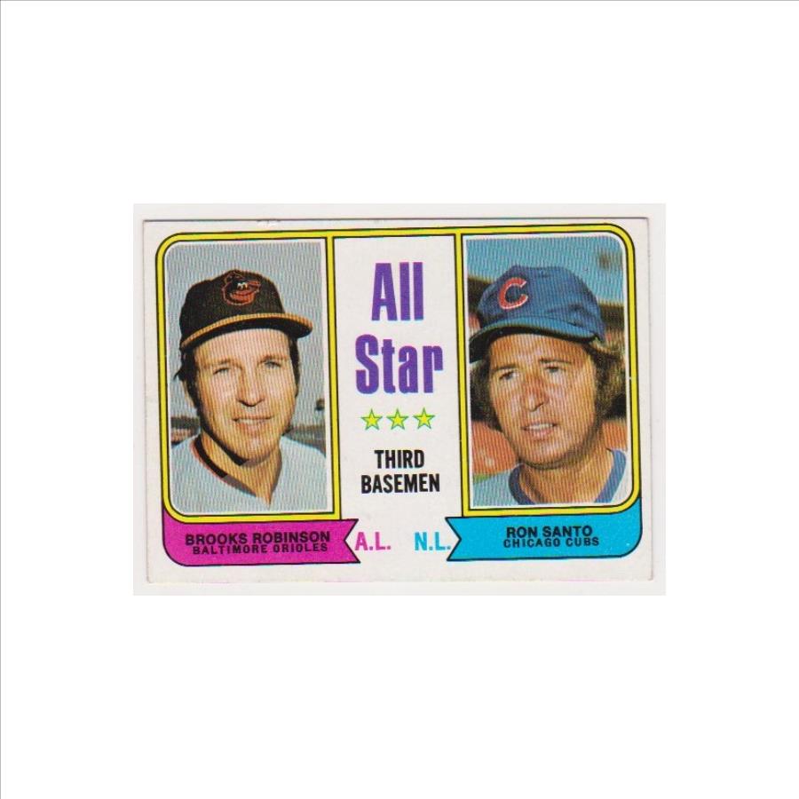 1974 Topps Brooks Robinson + Ron Santo #334 Card - HOF'ers
