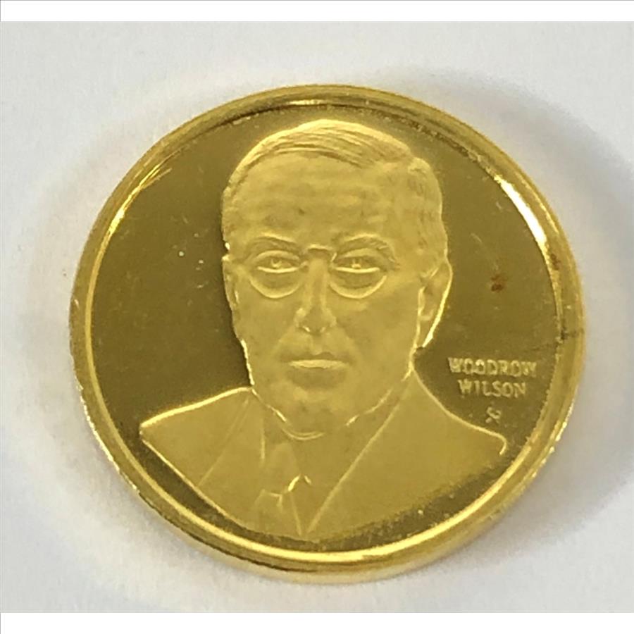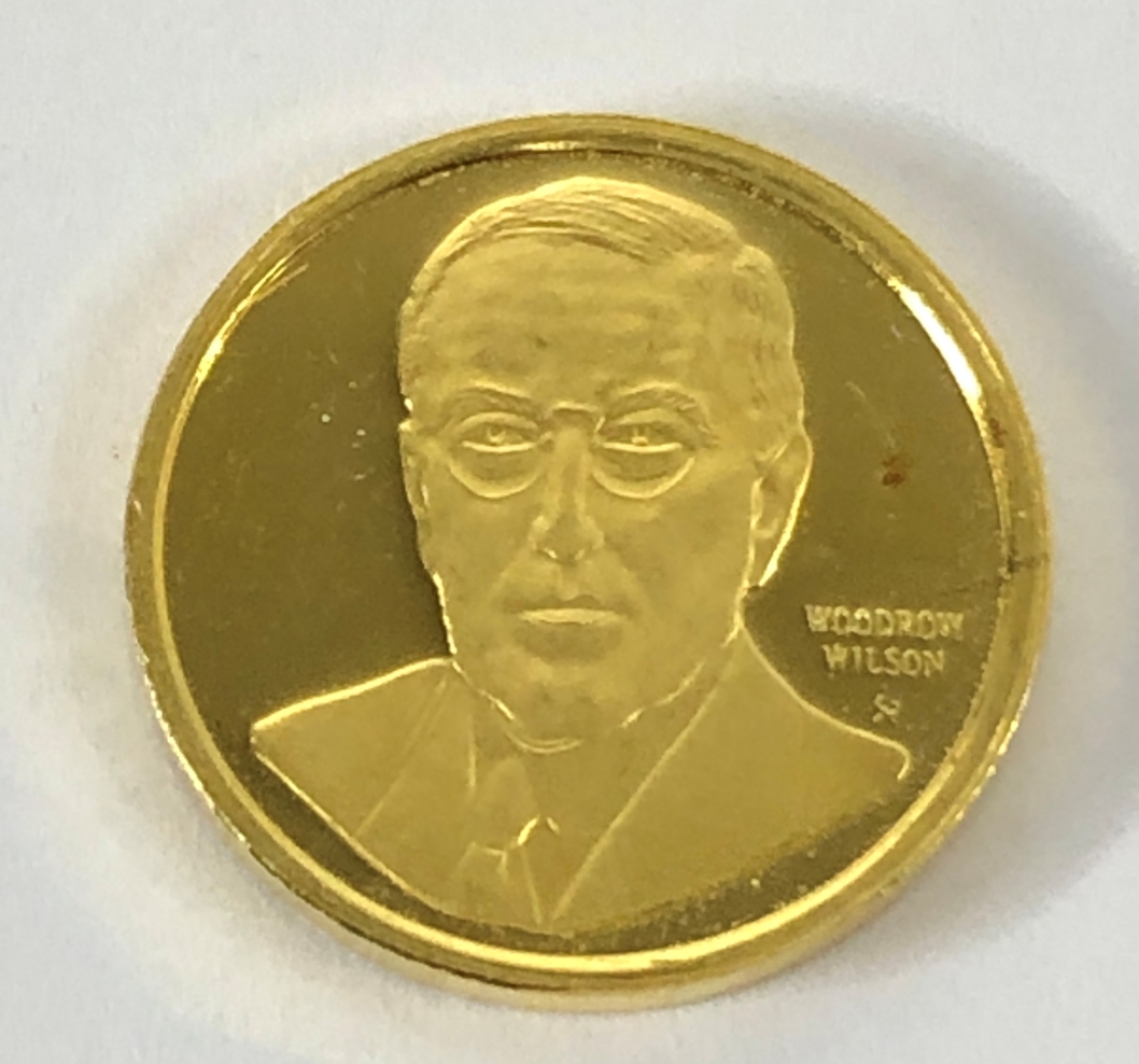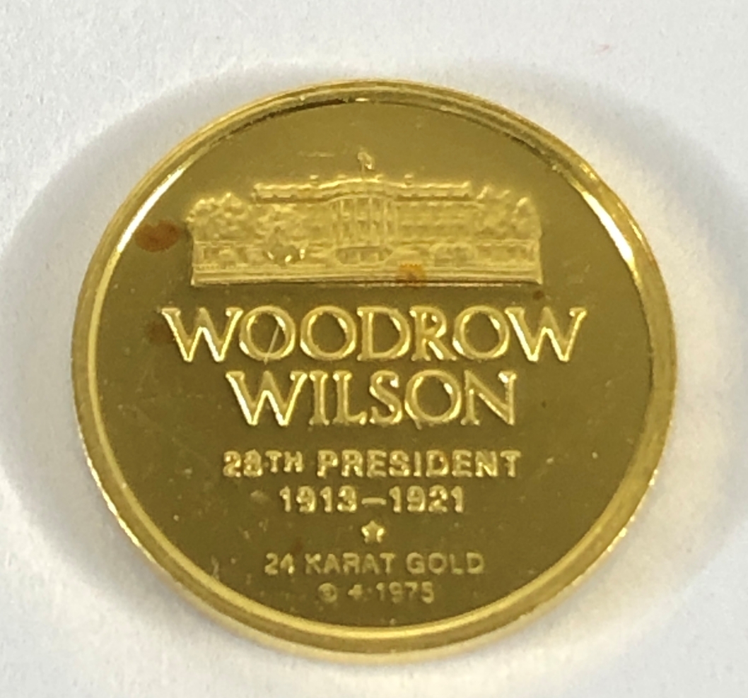 1975 24K Gold Woodrow Wilson Commemorative Medallion*.0579oz AGW*1/2" Diameter*Franklin Mint