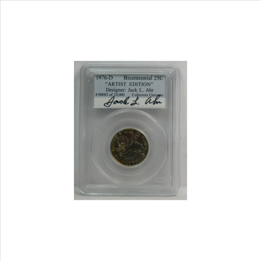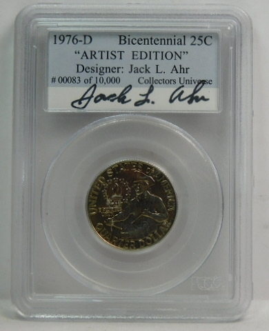 1976-D Bicentennial Washington Quarter - SIGNED by Designer; Jack L. Ahr - Graded Artist Edition #00083 of 10,000 by Collectors Universe