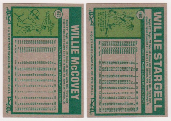 1977 Topps Willie McCovey #547 + Willie Stargell #460 Card Pair