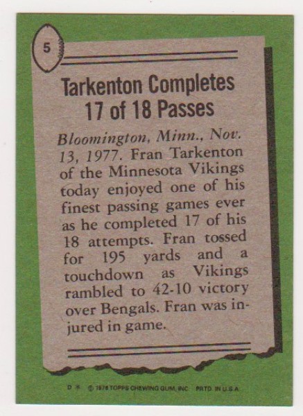 1978 Topps Fran Tarkenton #5 Card - HOF'er