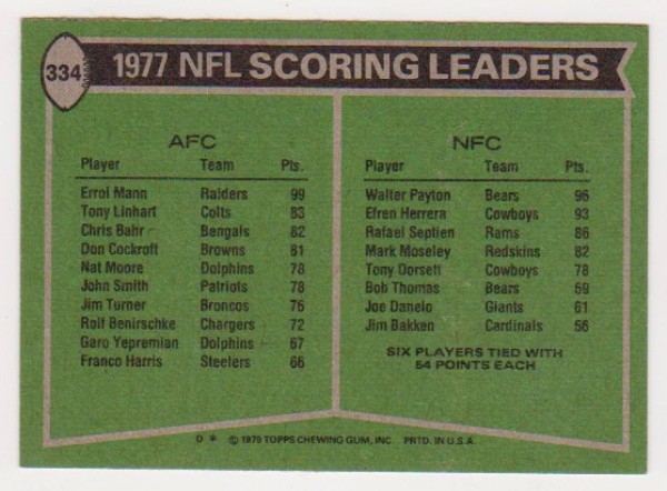 1978 Topps Walter Payton + Errol Mann #334 Card