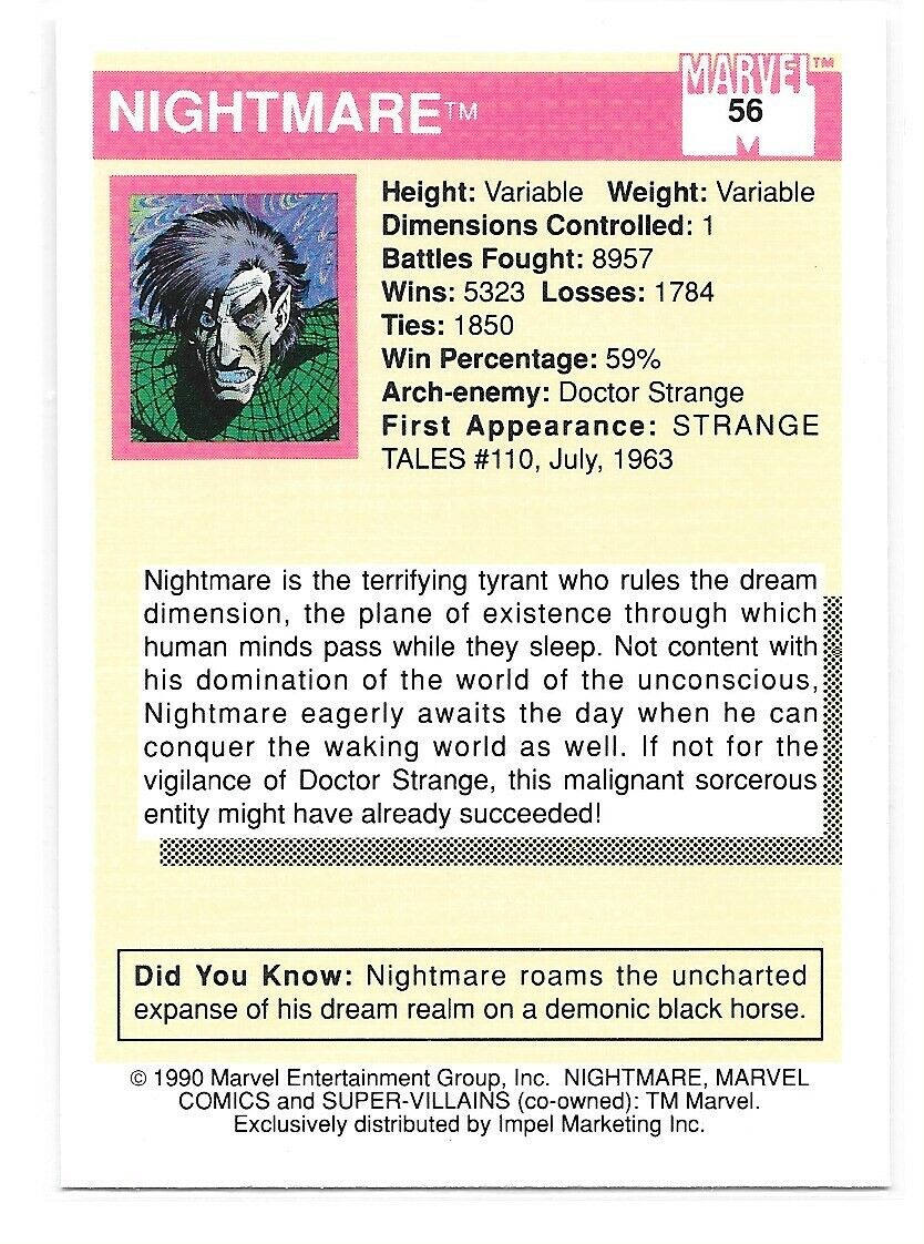 1990 Impel Marvel Universe Series 1 Super-Villains Nightmare #56
