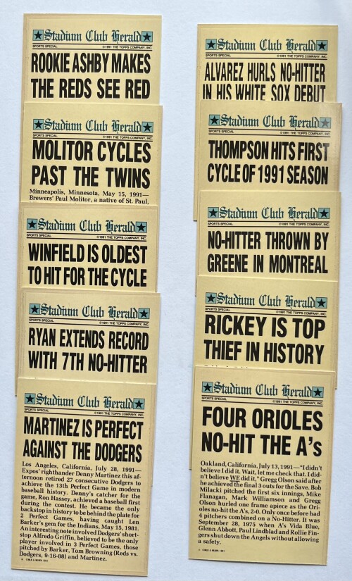 1991 Topps Stadium Club Limited Edition Cards - Members Only - 10 Baseball Cards