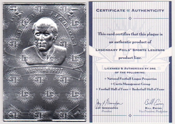 PropertyRoom.com's trusted merchant, Sports Collectibles, presents this online auction for the above 1993 Legendary Foils Terry Bradshaw Sculpted Card With COA.
