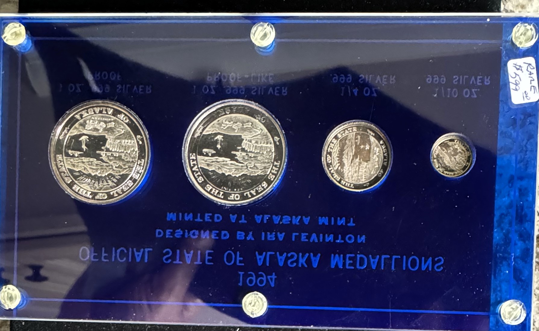 1994 OFFICIAL STATE OF ALASKA, RARE MEDALLIONS, PROOF & PROOF LIKE SILVER BEAR 4 COIN SET IN ORIG HARD CASE