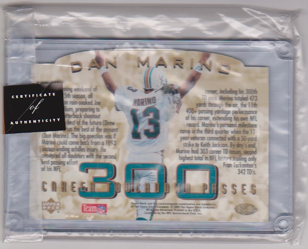 1994 Upper Deck Authenticated Dan Marino 300 Touchdown Passes 3.5x5 C-Card