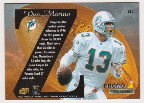 1997 Zenith Z-Team Dan Marino #ZT2 Promo Card