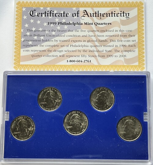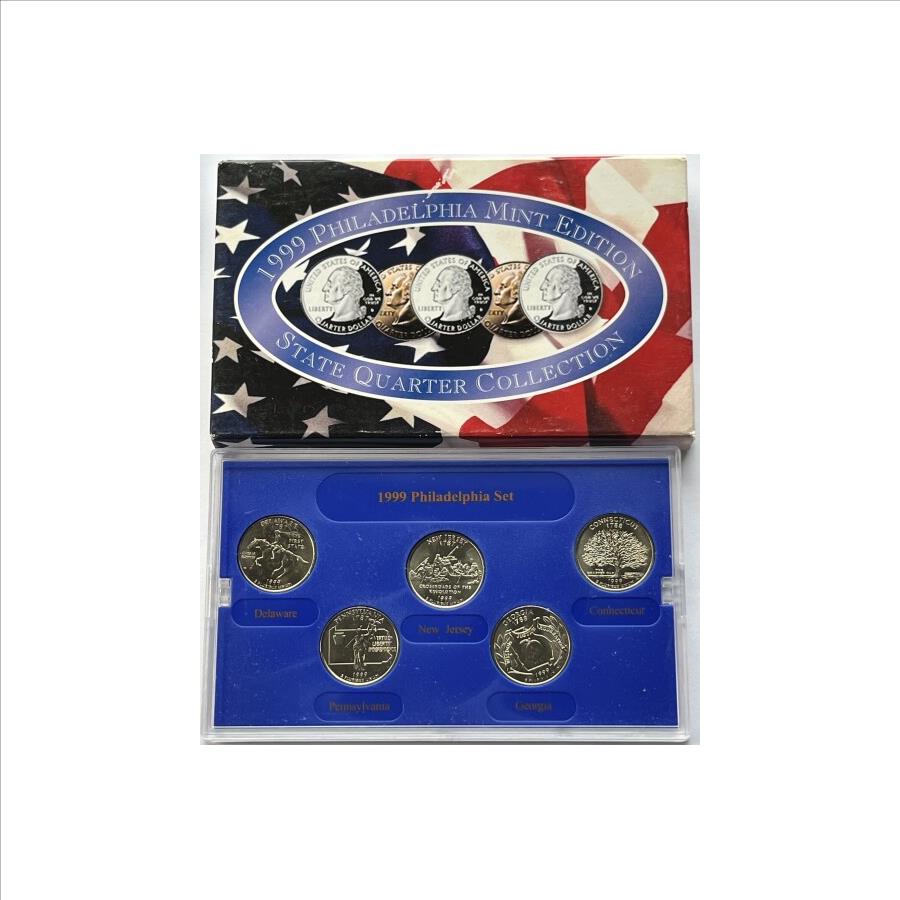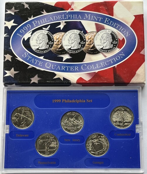 1999 Philadelphia Mint Edition - Brilliant & Uncirculated State Quarter Collection - DE, NJ, CT, PA & GA