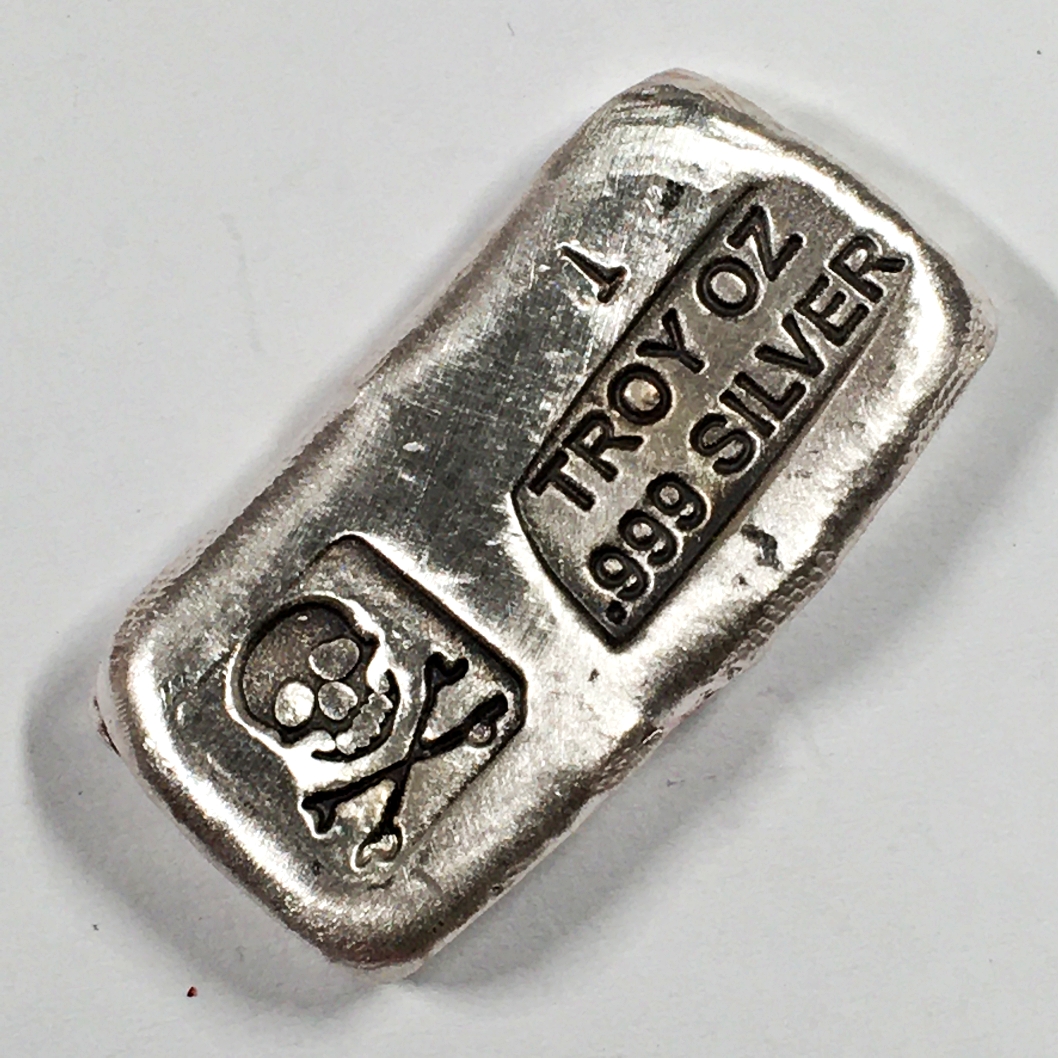 1oz 999 Silver Hand Poured Bar with Skull and Bones