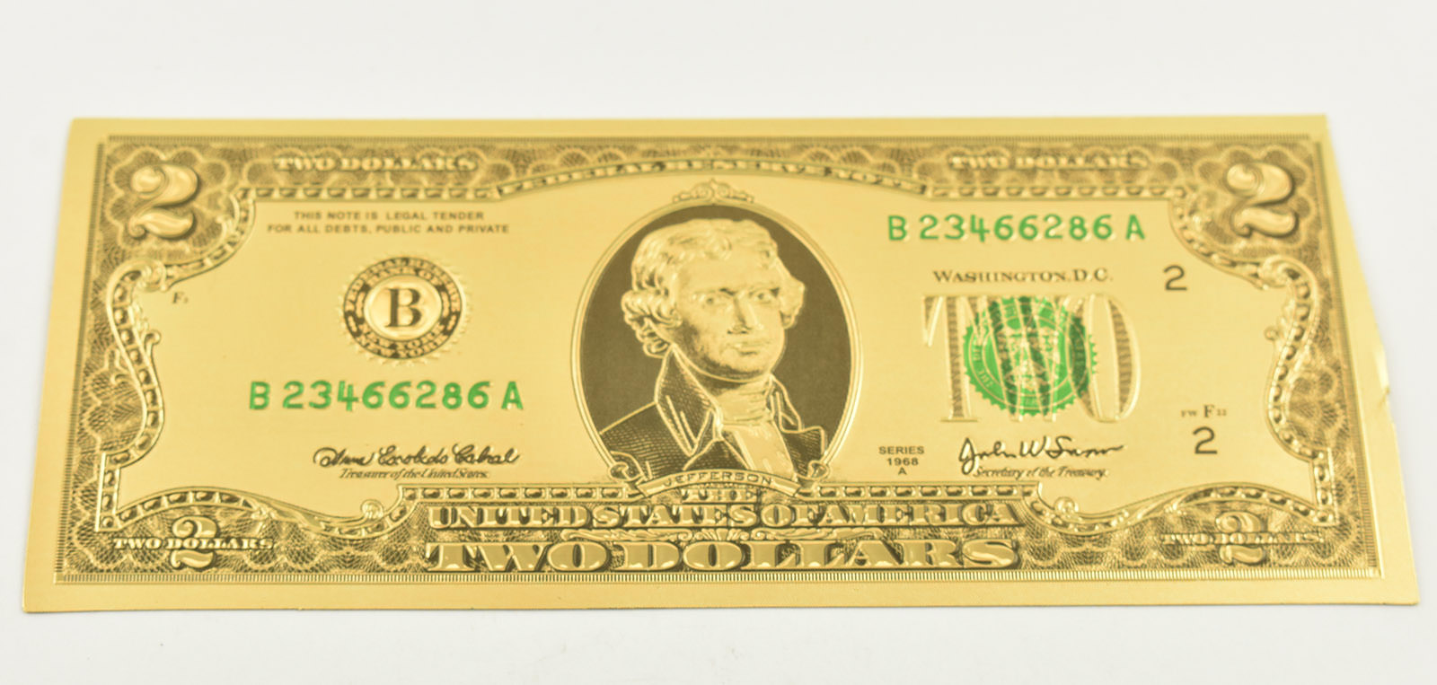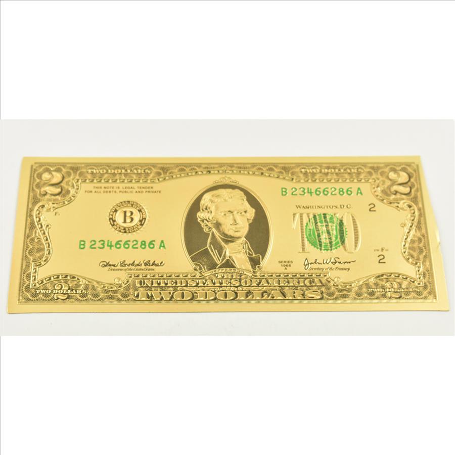$2 Federal Reserve Note - 22K Gold Bank Note - Rare