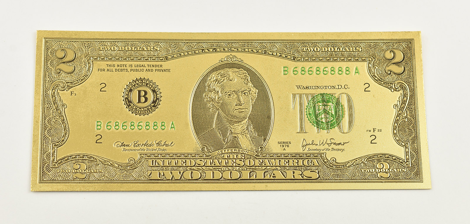 $2 Federal Reserve Note - 22K Gold Bank Note - Rare