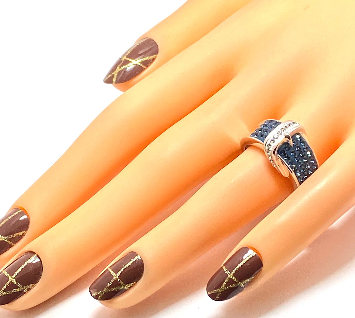 2.00 ctw Blue & White Italian Natural Natural Crystal Buckle Ring