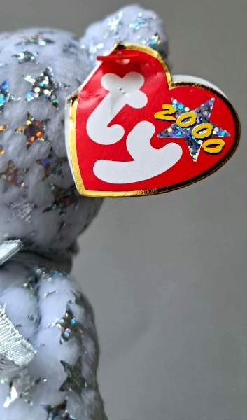This is a 2000 Ty The Beginning Bear Beanie Baby.  It has the original tags still attached.  The swing tag has wear including a couple of creases, but this one is otherwise in Excellent overall condition.