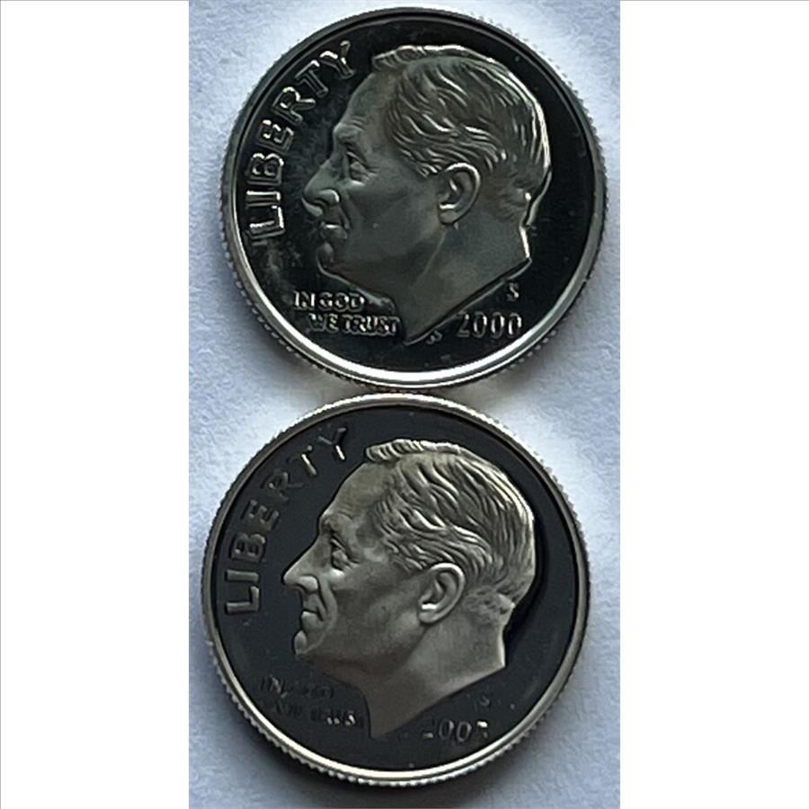 2000-S & 2005-S U.S. Silver Proof Roosevelt Dimes - Set of 2