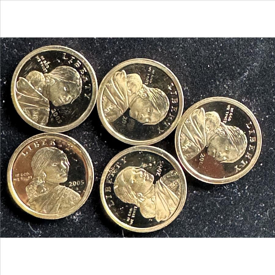 2005-S GOLDEN SACAGAWEA $1 DOLLAR PROOF UNC (5) REAL NICE COINS IN FLIPS