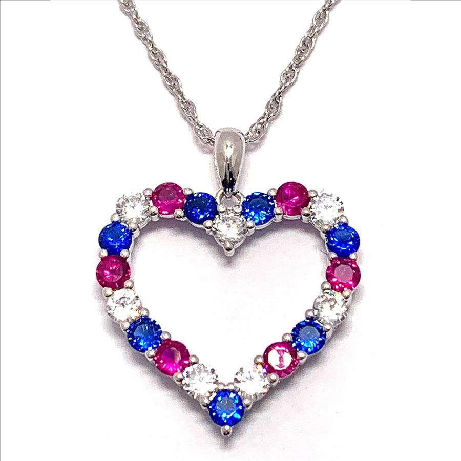 2.00ctw Ruby, Sapphire & Diamonique Diamond Heart Necklace