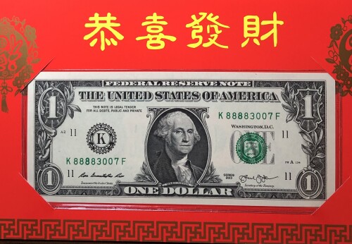 2013 U.S. Uncirculated $1 Federal Reserve Note - Lucky Money Note Featuring Serial Number Beginning with 8888