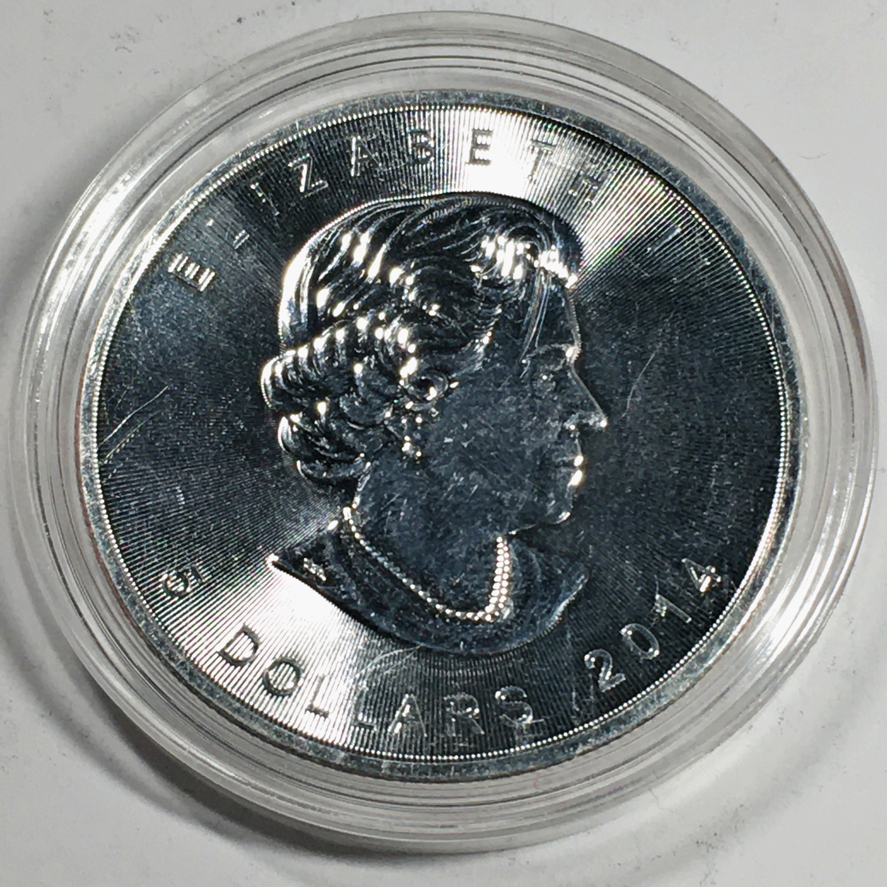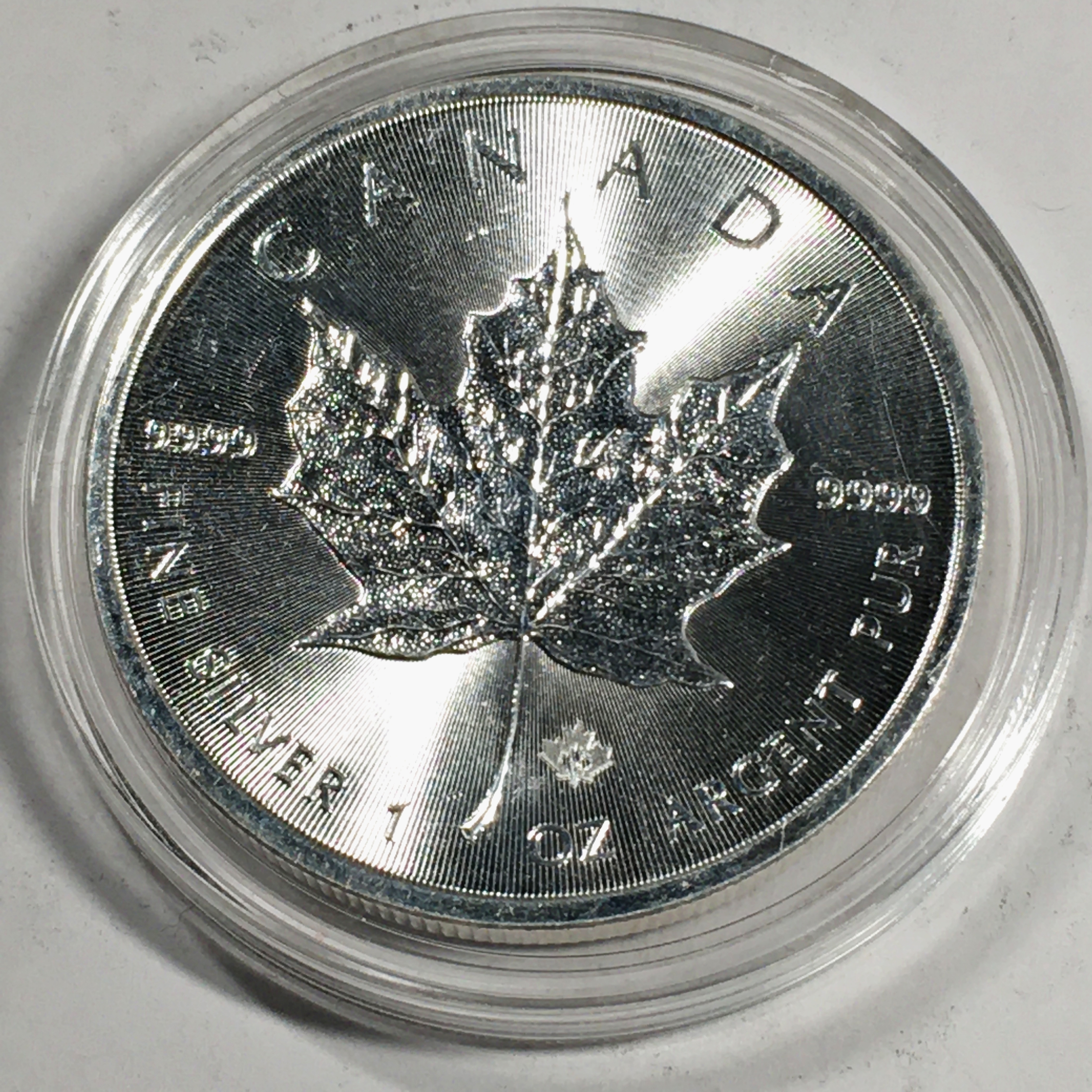 2014 Canada $5 Silver Maple Leaf with Maple Leaf Privy*In Capsule