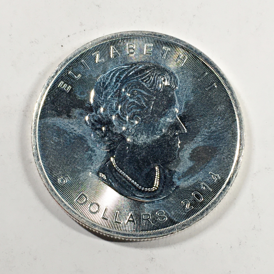 2014 Canada $5 Silver Maple Leaf with Maple Leaf Privy*One Troy Ounce .9999 Fine Silver