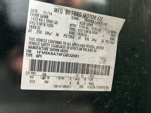 | VIN # | | 1FM5K8AT9FGB32581 |