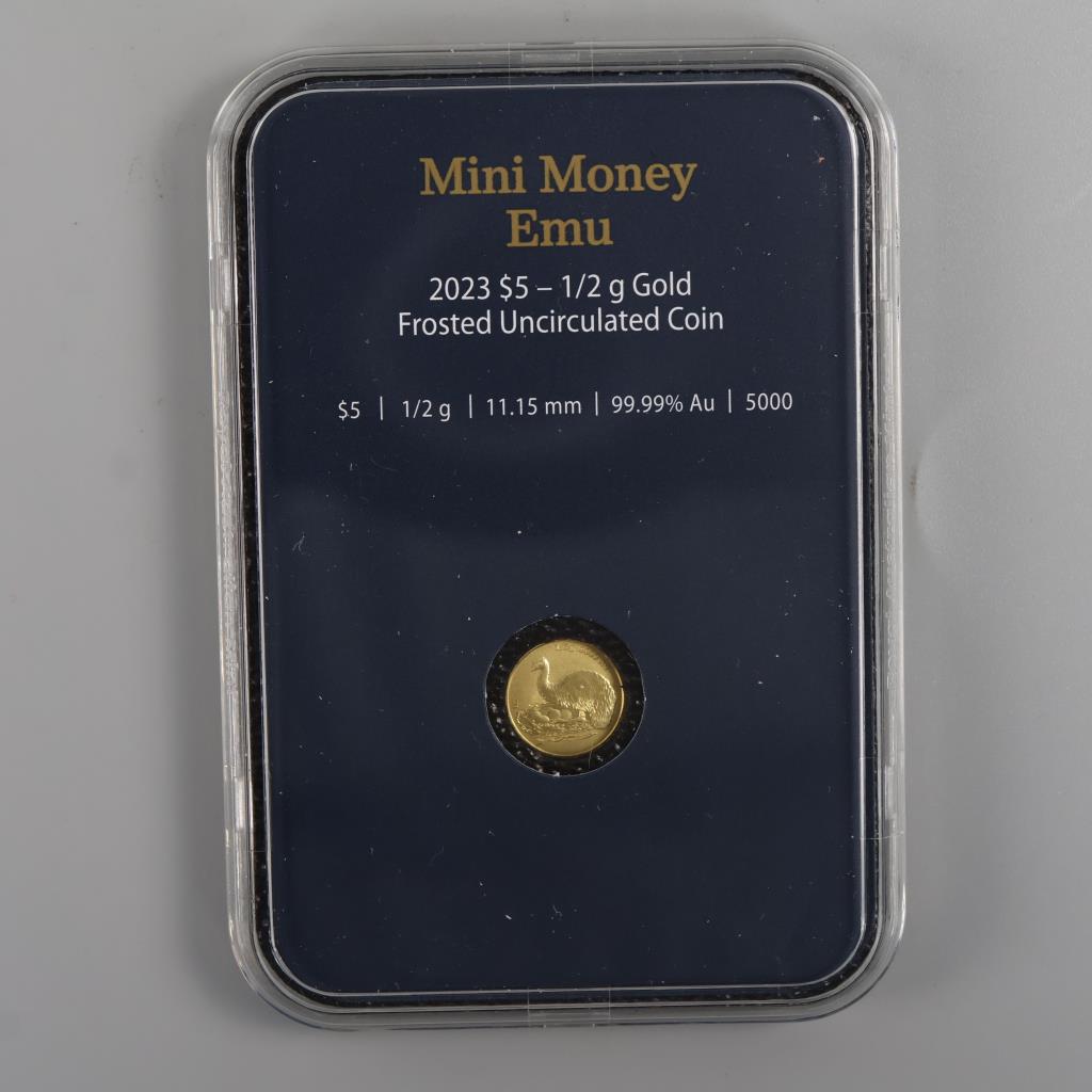 2023 Royal Australian Mint Mini Money Emu Frosted Fine Gold 5 Dollars 1/2g Round