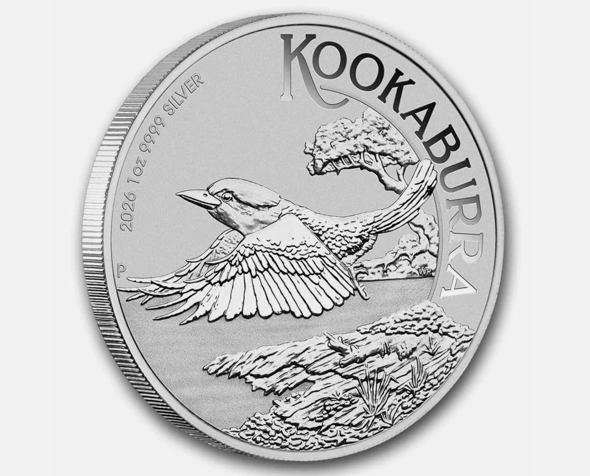 The 2026 Perth Mint Kookaburra features a striking new design with .9999 fine purity. It features a Kookaburra gracefully soaring over the treetops.