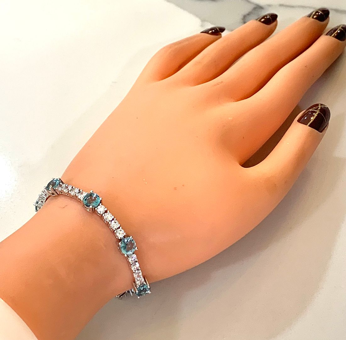 22.00ctw Blue Topaz & Diamonique Diamond Tennis Bracelet