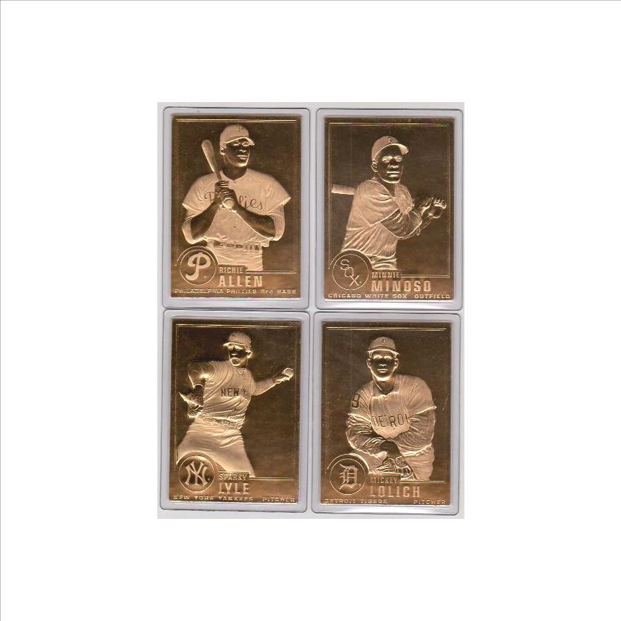 22kt Gold - 4 Different 1996 Danbury Mint Gold Cards - Minnie Minoso, Mickey Lolich, Richie Allen, Sparky Lyle