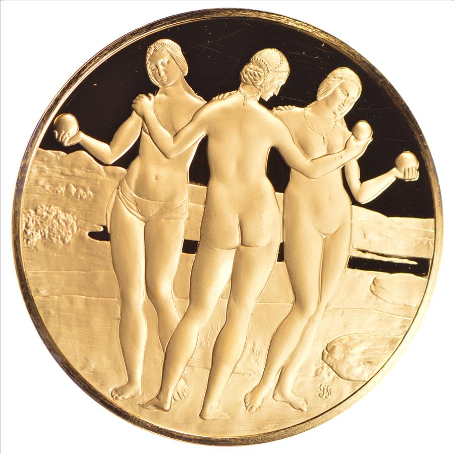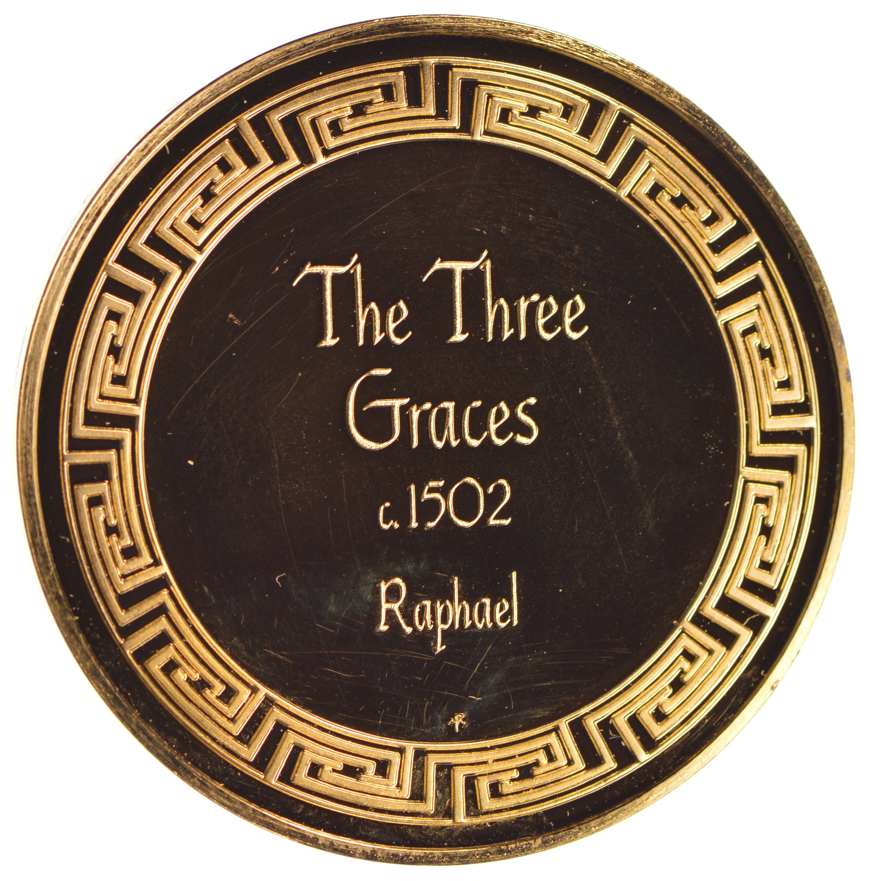 24K Gold Plated SILVER - The Three Graces c.1502 - Raphael .925 Sterling Silver Round - 31.9 Grams - LIMITED - Rare