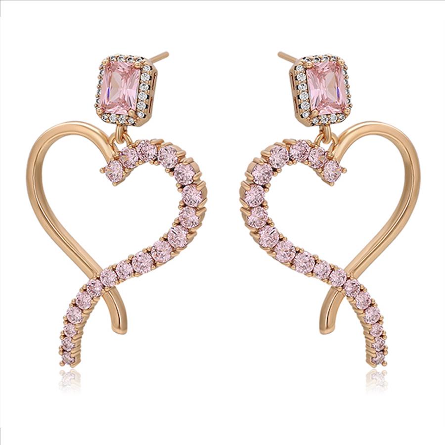 2.8tcw Each 18K Gold Plated Pink Simulated Diamond Heart Earrings