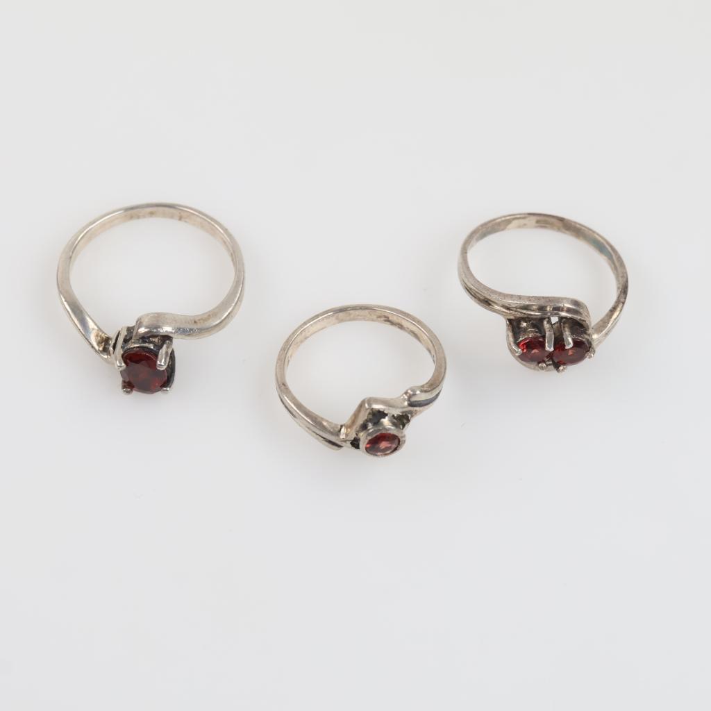 3 Sterling Silver Red Stone Rings