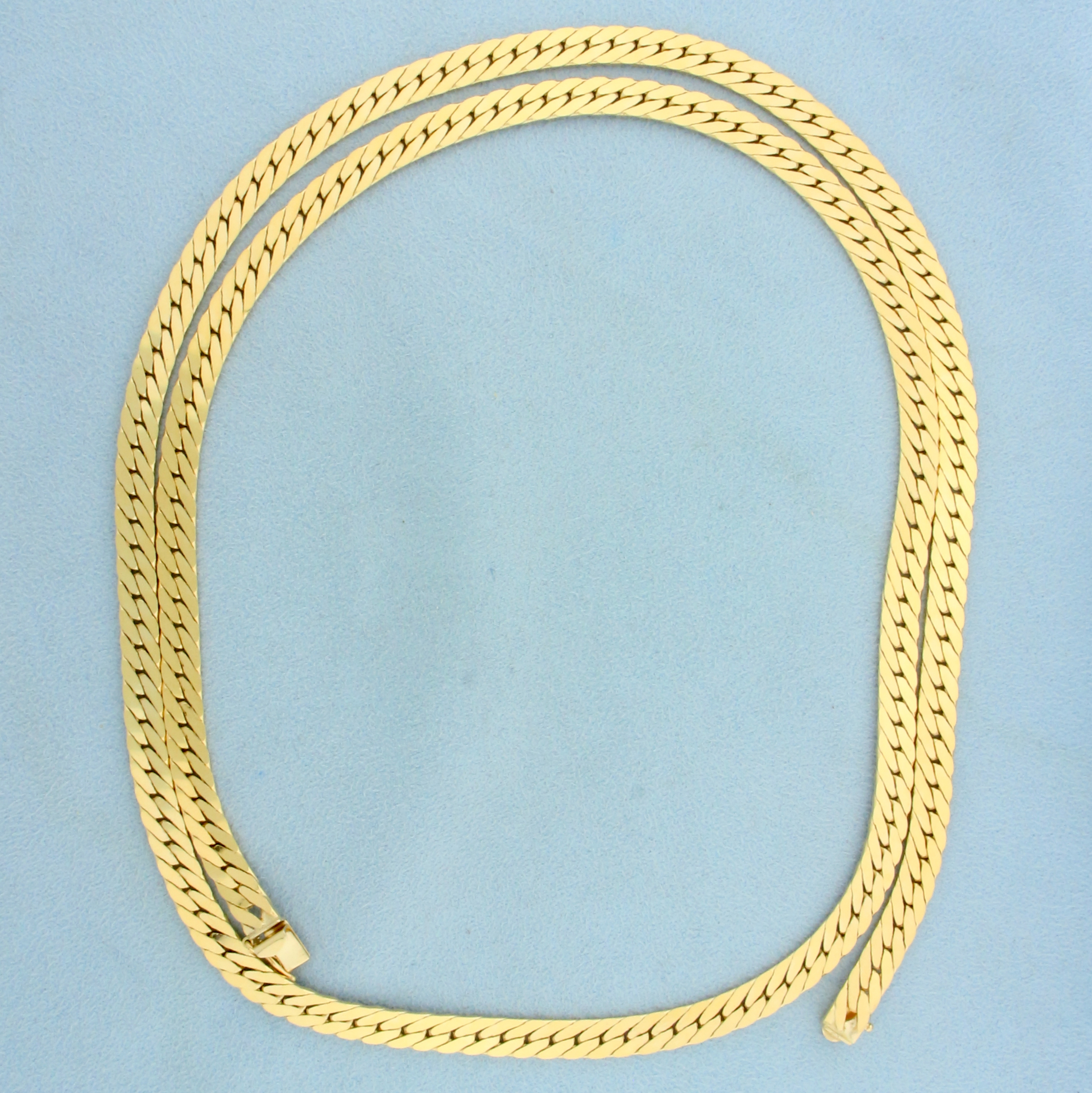 In 14K Yellow Gold. 30 inches long, 5.8mm wide, with a safety clasp. 62.2g.